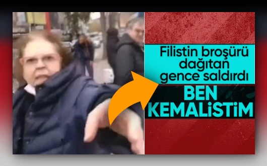 Ankara’da Filistin’e destek amacıyla broşür dağıtan genç bir kadına, başka bir kadın tarafından fiziksel ve sözlü saldırı yapıldı. ‘Kemalist’ olduğunu söyleyen kadın, polisin çağrılacağını öğrendiğinde ise olay yerinden hızla uzaklaşmaya çalıştı.