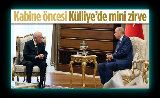 Görüşmede Cumhurbaşkanı Erdoğan’ın yeni kurulacak kabine ve isimler konusunda Cumhur İttifakı ortağı Devlet Bahçeli ile istişarelerde bulunduğu öğrenildi.