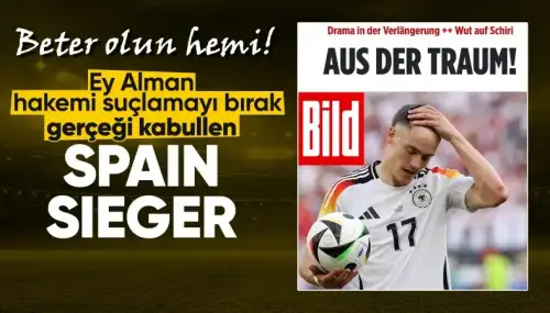 Milli futbolcumuz Merih Demiral’ın ceza alması için algı operasyonuna soyunan Bild gazetesi, Almanya’nın İspanya’ya yenilmesinin ardından mağlubiyeti manşetine taşıdı. Manşette “Rüya bitti” ifadelerine yer verildi.