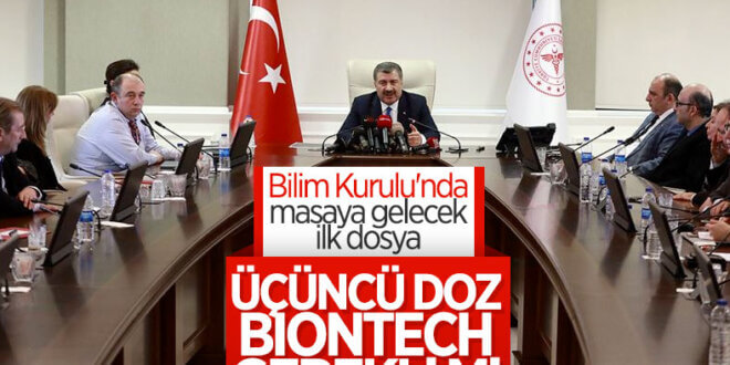 Meclis’te gazetecilerin sorularını yanıtlayan Sağlık Bakanı Fahrettin Koca, yarın Koronavirüs Bilim Kurulu’nun toplanacağını duyurdu. Bakan Fahrettin Koca, kurulun en önemli gündem maddesinin BioNTech aşılarındaki 3. doz uygulaması olduğunu söyledi. Buna göre yarınki kuruldan, BioNTech aşısı olanlar için üçüncü dozun uygulanıp, uygulanmaması yönünde karar çıkacak.