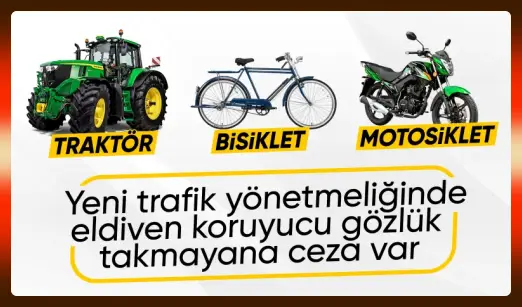 Yeni maddelere göre, bisiklet, motosiklet, traktör, elektrikli bisiklet kullanıcılarına eldiven ve gözlük gibi koruyucu ekipman zorunluluğu geldi.