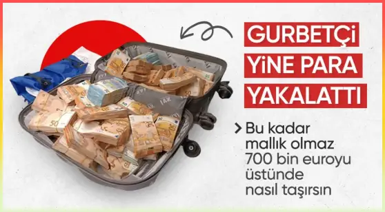 Böylelikle toplamda 2 yolcunun bavullarından 700 bin euro çıkmış oldu.