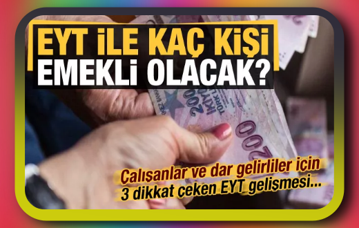 -EYT kapsamında yaklaşık 3-4 milyon kişi bulunuyor. Yapılacak düzenleme kapsamında ilk etapta yaklaşık 1.5 milyon kişinin emeklilik hakkı kazanacağı hesaplanıyor.
