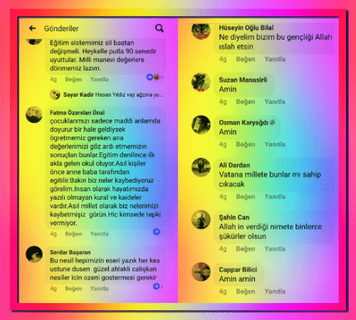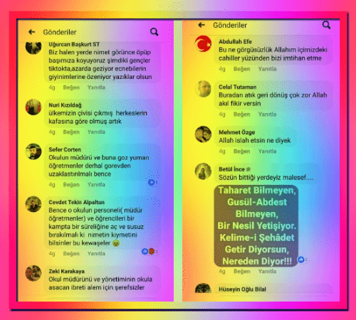 Bir medya kuruluşu olarak, onları eğiten eğiticileri, okul yönetimini onları büyüten anne ve babaları hem kınıyor hem de yazıklar olsun diyerek ilgili kurumları soruşturma açtırmaya davet ediyoruz. Allah bu nimeti ayaklar altına almayı eğlence haline getirenleri ve göz yumanları, zevkle seyredenleri bu nimete muhtaç eylesin diyor sözü sosyal medya üzerinden gelen tepkilere bırakıyoruz.