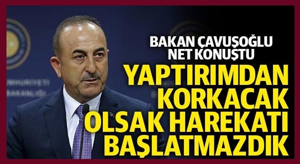 Dışişleri Bakanı Mevlüt Çavuşoğlu, “Yaptırımlardan korkacak olsak biz burada bu harekatı başlatmazdık. Bu bizim için hayati derecede ulusal güvenlik meselesi” dedi.