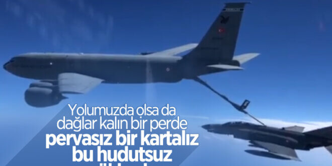 Görüntüde, bir F-16 pilotunun son kontrollerini yapıp havalandığı anlara, Türk Silahlı Kuvvetlerinin havadaki gözü olarak nitelendirilen bir Awacs uçağının uçuşuna ve tanker uçaktan F16’ya havada başarıyla yapılan yatık ikmaline yer verildi.