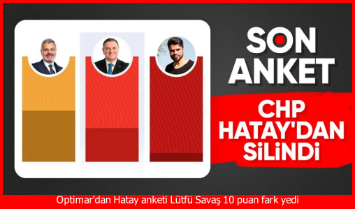 Seçim sonucu en merak edilen illerin başında gelen Hatay için Optimar Araştırma bir anket çalışması yaptı. Hataylılara “Hatay Büyükşehir Belediye Başkanlığı için oyunuzu hangi partiye / adaya verirsiniz?” sorusu yöneltildi. Lütfü Savaş’a tepki anketlere de yasırken, AK Parti adayı Savaş’a 10 puan fark attı.