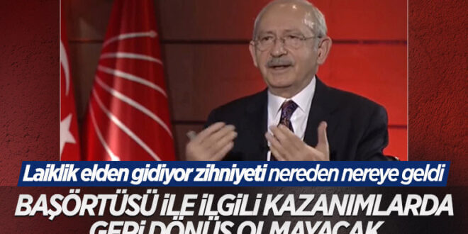 “Kimse şunu düşünmemeli: Efendim bir kazanımım vardı acaba elimden gidecek mi? Örneğin; Başörtüsü olayı.” diyen Kılıçdaroğlu, sözlerini şöyle sürdürdü: