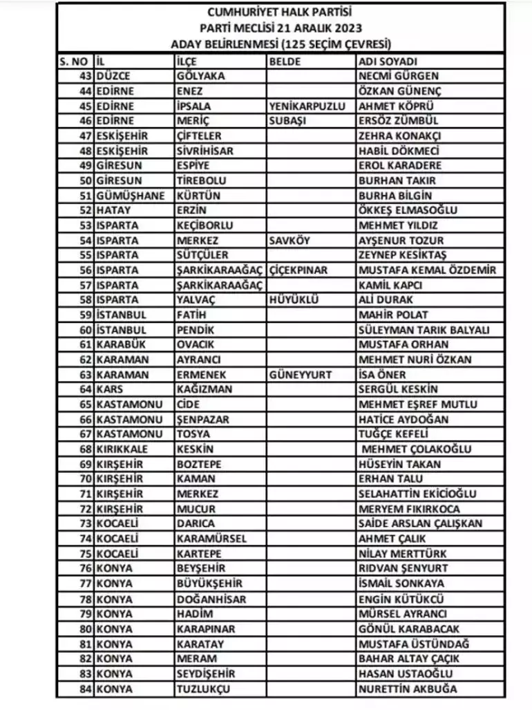 Toplantı sonrası kameraların karşısına geçen CHP Sözcüsü Deniz Yücel’in açıkladığı adaylar şöyle: