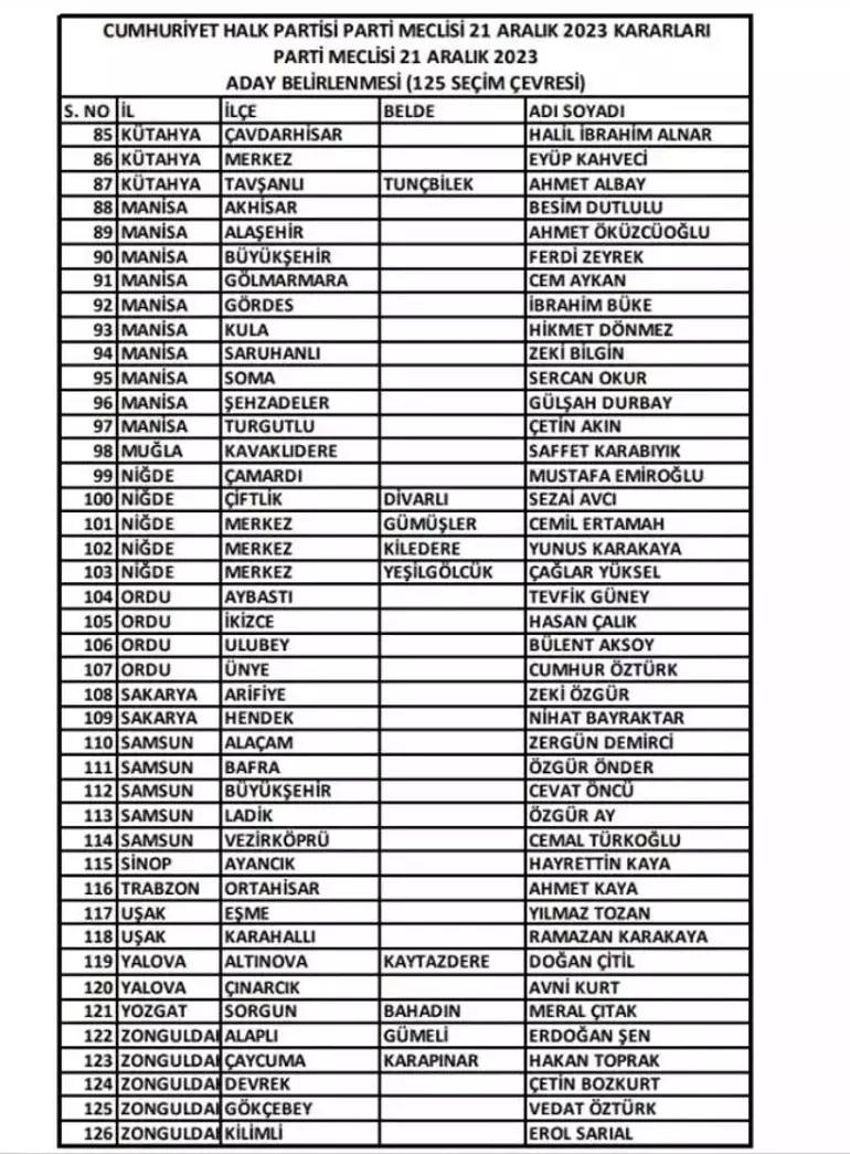 Geçtiğimiz günlerde 227 seçim çevresinde adaylarını açıklayan CHP, bugün yapılan Parti Meclisi toplantısında 3’ü büyükşehir olmak üzere 9 ilin belediye başkan adaylarını açıkladı.