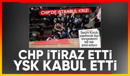 Yüksek Seçim Kurulu, İlçe Seçim Kurulları’nın kongreleri durdurma kararlarını kaldırdığını duyurdu. CHP’nin İstanbul’da 39. Olağan Kongre süreci kaldığı yerden devam edecek.