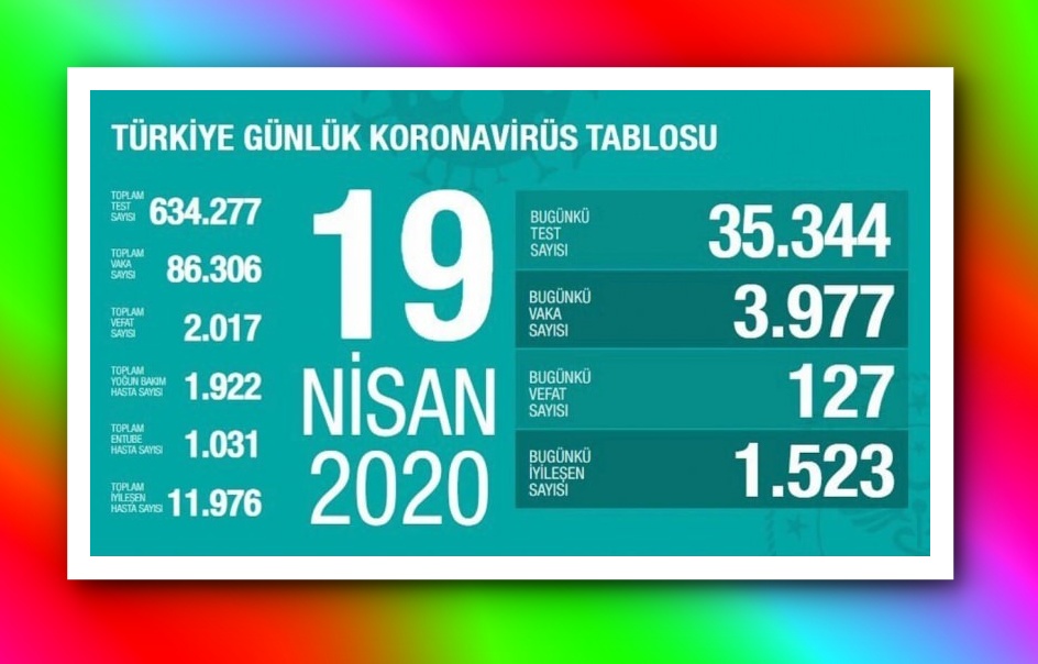 Türkiye’de son 24 saatte 3 bin 977 kişiye COVID-19 tanısı konuldu, 127 kişi hayatını kaybetti, toplam vaka sayısı 86 bin 306, can kaybı 2 bin 17 oldu.