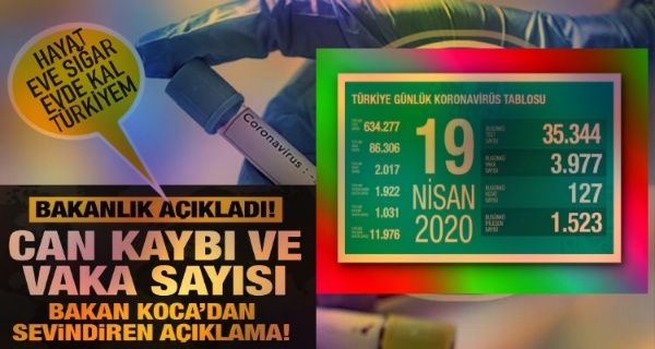 Bakan Koca yaptığı açıklamada, ”Tedbirlere gösterdiğimiz özen meyvelerini veriyor. Biz günlük test imkanlarını artırırken, sorumlu davranışlarınız da yeni vaka sayılarını azaltacak. Sağlık ordumuza ve sağlık sistemimizin gücüne güvenin. Tedbiri elden bırakmayın.” ifadelerini kullandı.