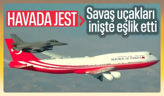 Cumhurbaşkanını taşıyan uçak Maskat Havalimanı’na yaklaşırken F-16 savaş uçakları eşlik etti.