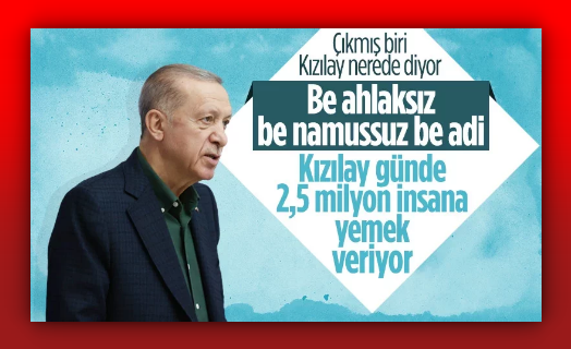 Cumhurbaşkanı Recep Tayyip Erdoğan, Kızılay’ın deprem bölgesinde olmadığı iftiralarına, “Be ahlaksız be namussuz, Kızılay günde 2,5 milyon insana yemek veriyor” dedi.