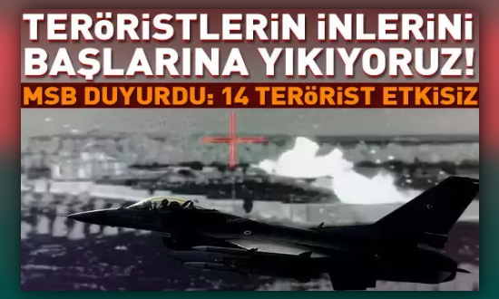 Suriye’nin kuzeyinde bölücü terör örgütü PKK/YPG’ye ait noktalar vuruluyor. Milli Savunma Bakanlığı, “Sorumlu düzeyde teröristlerin de olduğu 15 hedef vuruldu” açıklamasını yaptı. Bakanlığın sosyal medya paylaşımında “Demirden Pençelerimizle Devam!” ifadeleri kullanıldı