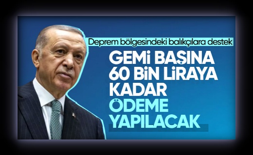 Cumhurbaşkanı Recep Tayyip Erdoğan, deprem bölgesinde yaşayan balıkçılara destek verildiğini söyleyerek, “Yarın itibariyle 3 bin 500 ile 60 bin lira arasındaki desteği depremzede balıkçılarımızın hanesine yatırıyoruz” dedi.