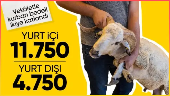 Diyanet İşleri Başkanlığı, vekaletle kurban kesim bedelinin yurt içinde 11 bin 750 lira, yurt dışında ise 4 bin 750 lira olarak belirlendiğini açıkladı.
