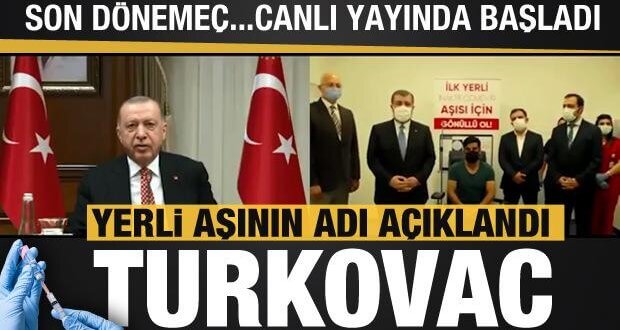 Yerli Kovid-19 aşısının Faz-3 çalışması kapsamında gönüllülerle yürütülen aşılama programı, Cumhurbaşkanı Erdoğan’ın çevri içi katılımıyla Ankara Şehir Hastanesi’nde başladı. Yerli Kovid-19 aşısının adının “TURKOVAC” olacağı açıklandı.