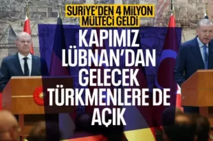 Suriye’den gelen mültecilere Türkiye’nin kapılarını hep açık tuttuğunu söyleyen Cumhurbaşkanı Recep Tayyip Erdoğan bu savaş döneminde Lübnan’dan gelenlere de kapıların hep açık tutulacağını belirtti. Cumhurbaşkanı Recep Tayyip Erdoğan, Almanya Şansölyesi Olaf Scholz’u İstanbul’da kabul etti. İkili ve heyetler arası görüşmelerin ardınan ortak basın toplantısı düzenlendi. Burada uluslararası göç sorunu ve …