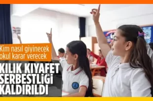 Milli Eğitim Bakanlığına Bağlı Öğrencilerin Kılık Kıyafetlerine Dair Yönetmelik’te değişiklik yapılması hakkındaki Yönetmelik Resmi Gazete’de yayımlandı. Milli Eğitim Bakanlığı’na bağlı okul öğrencilerinin kılık ve kıyafetlerine dair değişiklik yapılması hakkındaki Yönetmelik Resmi Gazete’de yayınlanarak yürürlüğe girdi. KIYAFET SERBESTİSİ UYGULAMASI KALKTI Karara göre, Bakanlığa bağlı okullarda okul kıyafeti dört yıl değiştirilmeyecek, veliler …
