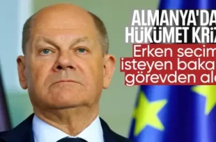 Almanya’da Başbakan Olaf Scholz, aynı zamanda koalisyon ortağı da olan Maliye Bakanı Christian Lindner’i görevden aldı. Almanya’da haftalardır süren siyasi çekişmelerin ardından Sosyal Demokrat Parti (SPD), Yeşiller Partisi ve Hür Demokrat Parti’den (FDP) oluşan üçlü koalisyon hükümeti dağılma noktasına geldi. MALİYE BAKANI GÖREVDEN ALINDI Almanya Başbakanı Olaf Scholz, Maliye Bakanı …