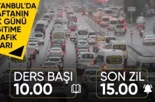İstanbul Valiliği’nden yapılan açıklamada; pazartesi günü trafik yoğunluğuna karşı önlem olarak eğitim-öğretimin saat 10.00-15.00 arasında olacağı belirtildi. 9 Eylül itibarıyla 2024-2025 eğitim ve öğretim yılı başlıyor. Okula uyum çerçevesinde anaokulu ve birinci sınıflar bu hafta okula başlamıştı. Ancak önümüzdeki hafta itibarıyla bütün öğrenciler ders başı yapacak. Okulların açılmasıyla da trafik yoğunluğu …
