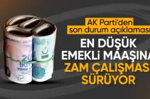 AK Parti Sözcüsü Ömer Çelik, emeklilere zam gündemine ilişkin çalışmaların devam ettiğini söyledi. AK Parti Sözcüsü Ömer Çelik, partisinin MYK gündemine ilişkin açıklamalarda bulundu. Çelik’e, açıklamalarının ardından emeklilere zam gündemi soruldu. Henüz zam konusunda belli bir karar olmadığını ve üzerinde çalışmaların devam ettiğini belirten Çelik, şu cevabı verdi: “Emekliye zam …