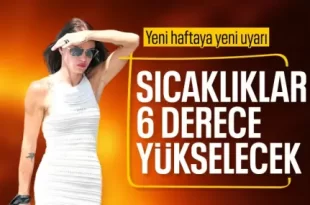 Yeni haftada hava sıcaklığının, mevsim normallerinin 4 ila 6 derece üzerine çıkması bekleniyor. Uzmanlar yurt geneli için ‘yüksek sıcaklık’ uyarısı yapıyor. Kavurucu sıcaklar, etkisini sürdürüyor. Türkiye, sıcak hava dalgasının etkisi altında. Mevsim normallerini üzerine çıkacak Sıcaklık, yeni haftada mevsim normallerinin üzerinde seyredecek. Meteoroloji’den bazı bölgeler için kısa süreli yağmur uyarısı …