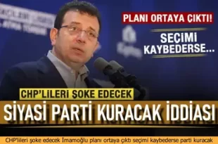 Haberin Detayı İçin TıklayınızCHP’lileri şoke edecek İmamoğlu iddiası! Seçimi kaybederse parti kuracakmış!
