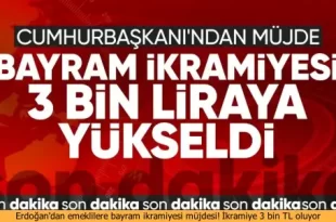 Haberin Detayı İçin TıklayınızErdoğan’dan emeklilere bayram ikramiyesi müjdesi! İkramiye 3 bin ₺ oluyor