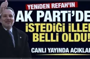 Haberin Detayı İçin TıklayınızYeniden Refah Partisi, Ak Parti’den 2 büyükşehir, 35 ilçe istemiş!