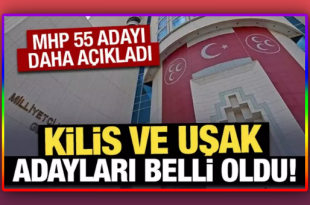 Milliyetçi Hareket Partisi, adaylıkları kesinleşen 2’si il 53’ü ilçe olmak üzere 55 belediye başkan adayını daha açıkladı. Milliyetçi Hareket Partisi, 31 Mart yerel seçimleri için 55 adayını belirledi. MHP, Kilis’te Hasan Kara’yı, Uşak’ta da Sezer Ateş belediye başkan adayı oldu. 3’ü büyükşehir ilçesi olmak üzere 53 ilçede de belediye başkan …