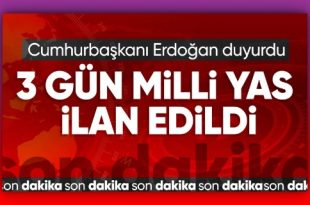Cumhurbaşkanı Recep Tayyip Erdoğan, İsrail’in Filistin saldırıları nedeniyle 3 günlük milli yas ilan edildiğini duyurdu. İsrail’in sivillerin bulunduğu El-Ehli Baptist Hastanesinde yaptığı katliam dünyayı ayağa kaldırdı..Birçok ülkeden İsrail’in bu vahşetine tepki geldi. AK Parti Sözcüsü Ömer Çelik de, yaptığı açıklamada ülkede milli yas ilan edileceğini duyurmuştu. “Aynı acıyı paylaşıyoruz” Çelik konuşmasında …