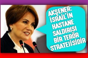 İYİ Parti Genel Başkanı Meral Akşener, İsrail’in Gazze’deki hastane saldırısına ilişkin, “Bu ancak ve ancak bir terör stratejisidir. Başta Birleşmiş Milletler olmak üzere tüm dünya kamuoyunu bir an önce en temel insan haklarına sahip çıkmaya ve Netanyahu terörünü durdurmaya davet ediyorum.” ifadelerini kullandı. Akşener, sosyal medya hesabından yaptığı paylaşımda, İsrail’in …