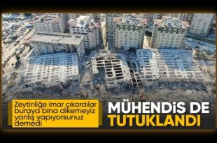 Türkiye’nin yaşadığı tarihi depremde, zeytinliğe inşa edilen ve yıkılması ile yüzlerce kişiye mezar olan Rönesans Rezindans’ın müteahhidi ve yapı denetim sorumlusundan sonra mühendisi de tutuklanarak cezaevine gönderildi. 6 Şubat, Türkiye tarihine gelmiş geçmiş en büyük felaketlerden biriyle geçti. Art arda yaşanan Kahramanmaraş merkezli 7.7 ve 7.6 şiddetindeki depremler Türkiye’nin güneydoğusunu …