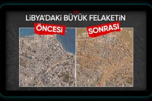 Sel felaketinin vurduğu Libya’da Derne şehrinin felaketten önce ve sonra çekilen havadan görüntüsü, yıkımın büyüklüğünü gözler önüne serdi. Orta Akdeniz’de etkili olan Daniel Fırtınası, Libya’nın Bingazi, Beyda, Merc, Suse ve Derne kentlerini etkiledi. Özellikle Derne şehri yerle bir oldu. Şehirleri yerle bir eden sel felaketinde ölü ve kayıp sayısı her …