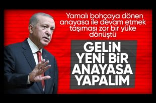 Yeni Anayasa Sempozyumu’nda konuşan Cumhurbaşkanı Erdoğan, birlik içinde yeni anayasa çağrısı yaparken, “Yamalı bohçaya dönen anayasayla yaşamaya devam etmek, ülke için taşınması zor bir yüke dönüşmüştür” dedi. Cumhurbaşkanı Recep Tayyip Erdoğan, İletişim Başkanlığı tarafından düzenlenen Yeni Anayasa Sempozyumu’nda açıklamalarda bulundu. Türkiye’yi özgürlükçü, demokratik, kuşatıcı anayasaya kavuşturma isteğinden “vazgeçmedik” vurgusunu yapan …