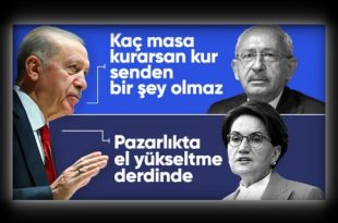 Rusya dönüşü uçakta gazetecilerin sorularını yanıtlayan Cumhurbaşkanı Erdoğan, Kemal Kılıçdaroğlu’nun seçmenleri suçlayan ifadelerine tepki gösterdi. Erdoğan ayrıca Meral Akşener’in yerel seçimle ilgili ifadelerini ise ‘pazarlıkta el yükseltme’ olarak yorumladı. Cumhurbaşkanı Recep Tayyip Erdoğan, dün Rus mevkidaşı Vladimir Putin ile görüşmek üzere Rusya’nın Soçi kentine gitti. Cumhurbaşkanı Erdoğan, dünyanın takip ettiği …