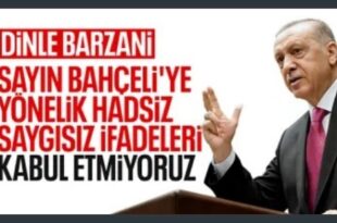 Cumhurbaşkanı Recep Tayyip Erdoğan, partisinin TBMM Grup Toplantısı’nda yaptığı konuşmada, Mesut Barzani’nin Şırnak ziyareti sonrasında MHP Genel Başkanı Devlet Bahçeli’ye yönelik kullanılan sert ifadeleri değerlendirdi. Erdoğan, söz konusu açıklamaları “hadsiz” ve “kabul edilemez” olarak niteledi. Erdoğan, Bahçeli’ye yöneltilen ifadelerle ilgili rahatsızlıklarının diplomatik kanallar üzerinden açık bir şekilde iletildiğini belirterek, karşı …