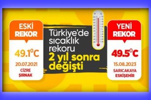 Meteoroloji Genel Müdürlüğü’nün verdiği verilere göre Hatay Hassa’da hava sıcaklıkları 50 dereceyi buldu. Böylece Türkiye tarihinin sıcaklık rekoru kırılmış oldu. Yurt genelinde etkili olan sıcaklıklar vatandaşları bunaltmaya devam ediyor. Etkisini gösteren Basra sıcaklıkları birçok ilde termometreleri mevsim normallerinin üzerine çıkarmış bulunuyor. Türkiye tarihinin sıcaklık rekoru Hassa’da kırıldı Meteoroloji Genel Müdürlüğü’nün …