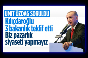 Haberin Detayı İçin TıklayınızErdoğan: Kemal Kılıçdaroğlu, Ümit Özdağ’a 3 bakanlık teklif etmiş