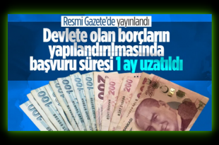 Kamu alacakları ile ilgili yapılandırmalar için başvuru tarihlerinin son günü, mayıs ayının sonundan haziran ayının sonuna sarkıtıldı. Karar, Resmi Gazete’de yayınlanarak yürürlüğe girdi. Kamu borçlarına yapılandırma için başvuru tarihinin 1 ay uzatıldı. Resmi Gazete’de yayınlanan karara göre, başvuru süresi bir ay uzatılarak 30 Haziran’a çekildi. Ödemenin ilk taksit ödeme süresi …