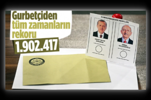 Yurt dışı seçmenden rekor katılım.. Cumhurbaşkanlığı seçiminin ikinci turu için oy kullanma işleminde oy kullanan seçmen sayısı 1 milyon 902 bin 417’ye ulaştı.. Gurbetçiler sandık başında. Tüm dünyanın gözü kulağı Türkiye’nin üzerinde. 2. tur cumhurbaşkanı seçimi için yurt dışı temsilciliklerde 20 Mayıs’ta başlayan oy verme işlemi, 24 Mayıs itibarıyla tamamlandı. …
