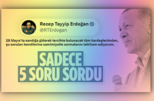 Haberin Detayı İçin TıklayınızErdoğan seçime ilişkin mesajlarını 5 soru sorarak verdi