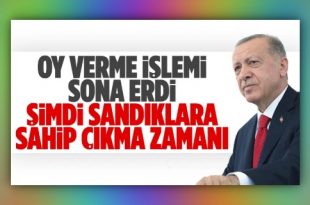 Oy verme işlemi bitti, Cumhurbaşkanı Recep Tayyip Erdoğan’dan mesaj geldi. Erdoğan, “Şimdi, her zaman olduğu gibi sandıklara sıkı sıkıya sahip çıkma vakti. Sonuçlar kesinleşinceye kadar milletimizin iradesini korumaya devam!..” dedi. Türkiye genelinde Cumhurbaşkanı ve 28. Dönem Milletvekili Genel Seçimleri için oy verme işlemi tamamlandı, gözler sonuçlara çevrildi… Cumhurbaşkanı Recep Tayyip …