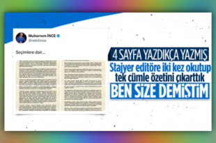 Haberin Detayı İçin TıklayınızMuharrem İnce’den muhalefete 4 sayfalık “Ben demiştim” açıklaması!