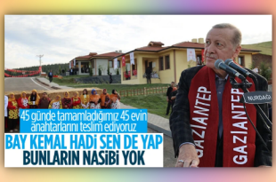 Nurdağı’nda inşa edilen köy evlerinin anahtar teslim töreninde konuşan Cumhurbaşkanı Erdoğan muhalefete sert tepki gösterdi. Erdoğan, “Bay bay Kemal hadi sen de yap, yapamazsın” dedi. Kahramanmaraş merkezli depremin üzerinden 75 gün geçti. Deprem bölgelerinden biri olan Gaziantep’in Nurdağı bölgesinde köy evlerinin yapımı tamamlandı. Cumhurbaşkanı Recep Tayyip Erdoğan, anahtar teslim töreninde …
