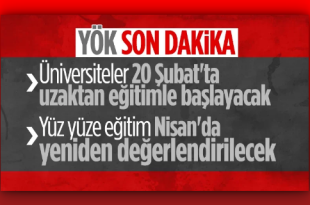 Yükseköğretim kurumlarındaki uygulamalı programlarda öğrencilerin bu eğitimlerini yüz yüze sürdüreceği bildirildi. YÖK Başkanı Erol Özvar, üniversitelerde 2022-2023 eğitim öğretim yılı bahar dönemine ilişkin açıklamalarda bulundu. Özvar, üniversitelerin 20 Şubat’ta uzaktan eğitime başlayacağını, yüz yüze eğitimin nisanda yeniden değerlendirileceğini açıkladı. Bir diğer yandan, uygulamalı programlarda eğitim gören öğrencilerin, eğitimlerini yüz yüze …