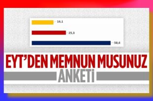 ASAL Araştırma’nın anketine göre EYT düzenlemesini Türkiye’nin yüzde 69.8’i olumlu karşılarken yüzde 30.2 karardan memnun olmadı. Türkiye’de milyonları ilgilendiren EYT konusu çözüldü. Cumhurbaşkanı Recep Tayyip Erdoğan, şartları karşılayanların yaş sınırı olmaksızın emekli olabileceklerini duyurdu. Yıllardır emeklilik bekleyenler tarafından büyük sevinçle karşılanan bu karar, gençler tarafından ise eleştirildi. Karardan memnun ve …